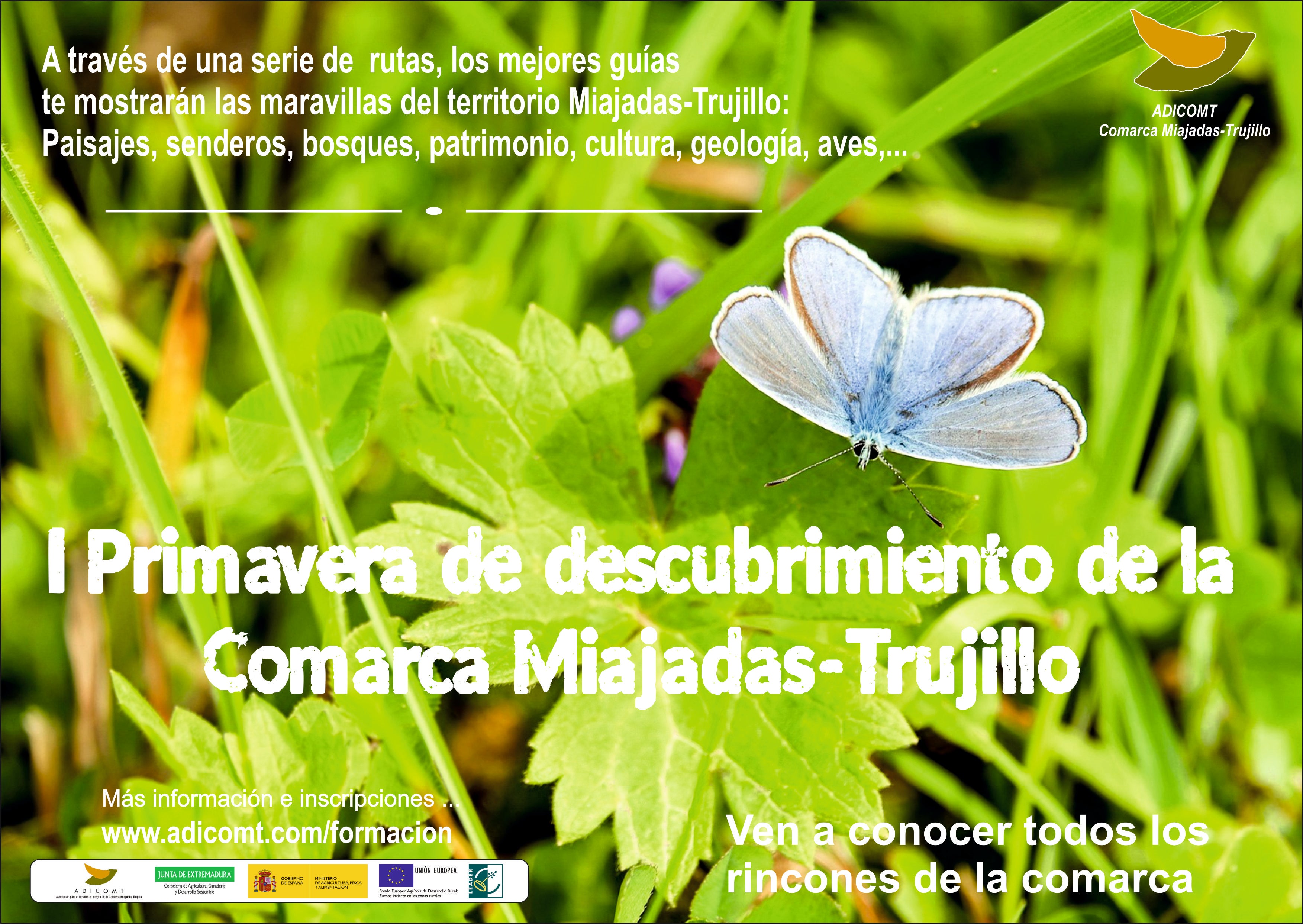 El grupo de acción local Adicomt pone en marcha una iniciativa que está entre el aprendizaje y el conocimiento del territorio y sus recursos. Se trata de la 'I Primavera de descubrimiento de la comarca Mijadas-Trujillo', compuesta por 21 rutas o salidas al campo. «Los mejores guías descubrirán paisajes, senderos, bosques, aves, flora y fauna que habita en nuestro territorio», explica la presidenta de la entidad comarcal, Olga Tello, en una nota de prensa.