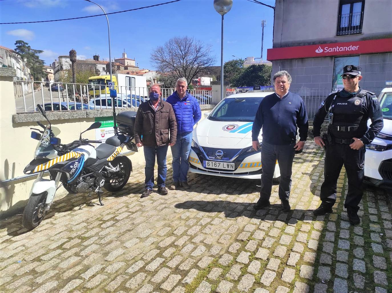 El alcalde presenta un nuevo vehículo eléctrico y una nueva moto para los agentesLa plantilla de la Policía Local contará con dos nuevos agentes a finales de mes. Así lo avanzó el alcalde, José Antonio Redondo, en la presentación del nuevo vehículo eléctrico, con una autonomía de 400 kilómetros, que ha comprado el Ayuntamiento para este colectivo. Ha supuesto una inversión de 36.000 euros, con una ayuda de la Junta, a través de fondos europeos, de 20.000 euros. A este vehículo, hay que sumar una nueva moto, que ha costado unos 4.000 euros.