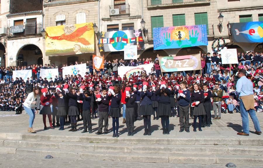 La celebración se realizó ayer, ya que el 30 de enero se tuvo que suspender por el mal tiempoCon una jornada soleada y buena temperatura, alumnos de centros educativos, junto a sus docentes, se unieron ayer en la plaza Mayor para celebrar, un ... año más, el día de la paz. En un princpio, estaba previsto para el 30 de enero. No obstante, no se pudo llevar a cabo por el mal tiempo.