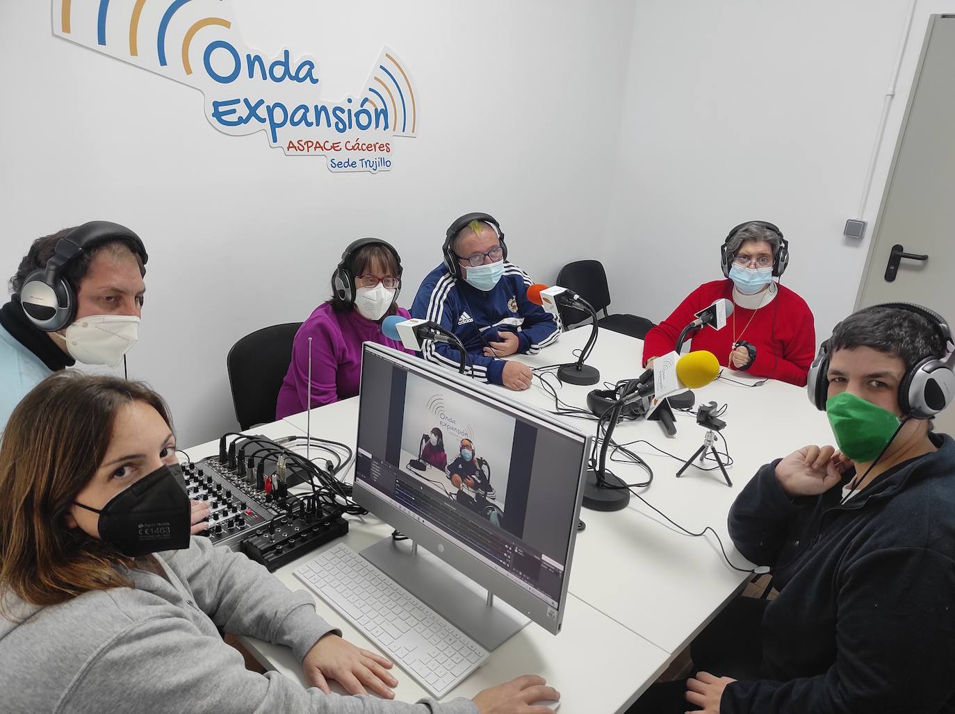 Su centro en Trujillo ha puesto en marcha la emisora de radio 'Onda Expansión', con su correspondiente taller, donde son protagonistas los usuariosTras un trabajo previo, cada usuario, con los cascos puestos y delante del micrófono, ya sabe lo que tienen que decir y hacer. Miguel, con la ayuda de la monitora, es el encargado de subir la regleta para dar paso a sus compañeros. Se hace el silencio y, a partir de ahí, comienza la magia, hace unos años impensable.
