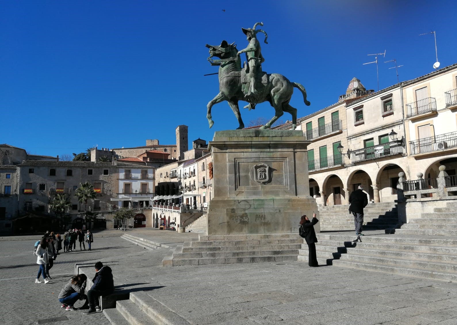 El Ayuntamiento limpiará hoy las pintadas de la estatua de Pizarro