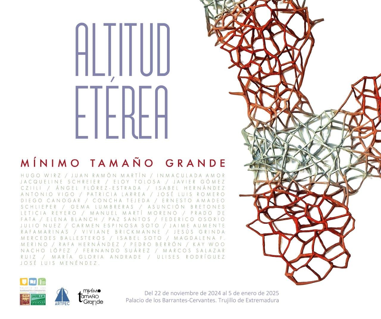 El Palacio de los Barrantes-Cervantes inaugurará este viernes una llamativa exposición titulada 'Altitud Etérea: Mínimo Tamaño Grande', compuesta por obras de artistas que forman parte de la Asociación Mínimo Tamaño Grande, dedicada promocionar la escultura en el arte contemporáneo. Este acto tendrá lugar a las 20.00 horas.