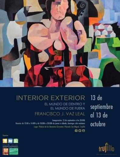 El palacio de los Barrantes Cervantes acoge, desde hoy y durante un mes, la exposición 'Interior Exterior, el mundo de dentro y el mundo de ... fuera', del pintor pacense Francisco J. Vaz Leal. Según fuentes de la organización, este artista dará a conocer sus obras más recientes de esta colección, «permitiéndonos sumergirnos en un mar de sensaciones único donde el color es protagonista junto con las formas», señalan.