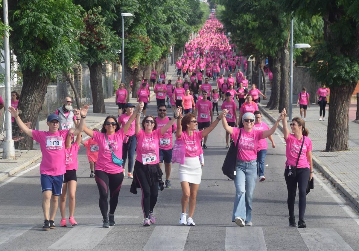 La gran mayoría de estos participantes fue con la camiseta característica de la jornada. Este hecho hizo que las calles y, principalmente, el recorrido de esta marcha de cinco kilómetros se tiñese del color rosa.