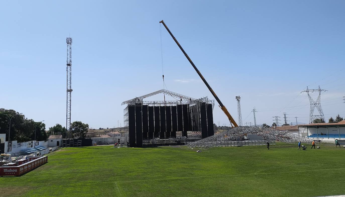El campo de fútbol se prepara para los recitales de Antoñito Molina y El Barrio