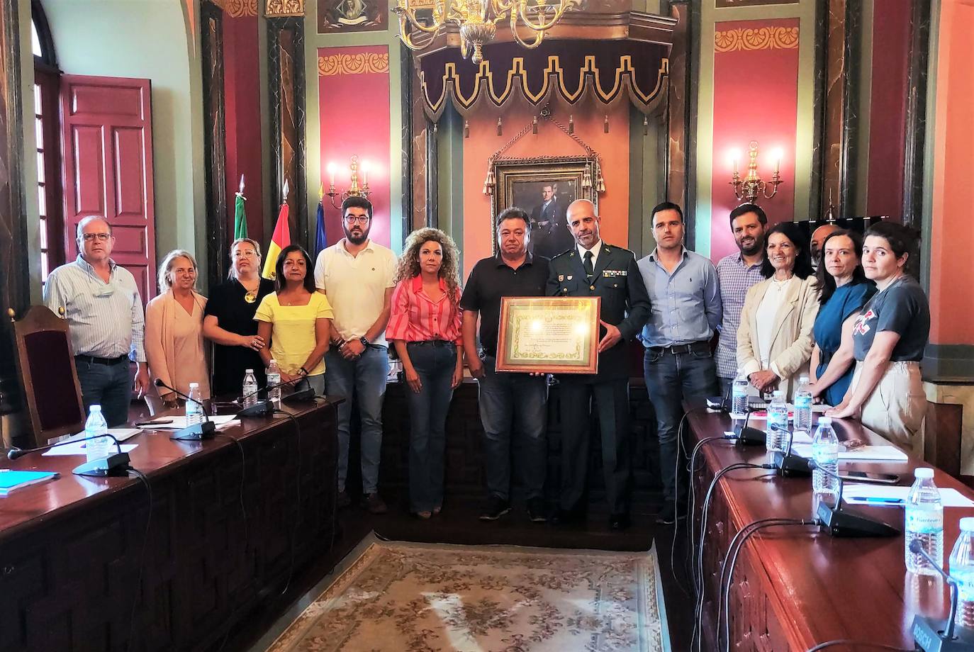 El capitán de la Guardia Civil recoge el reconocimiento otorgado por la coporación municipal