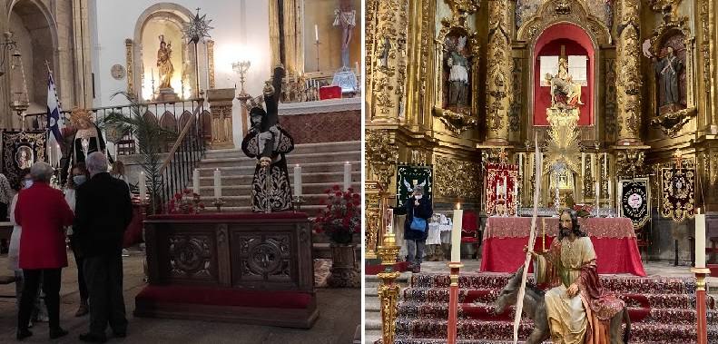 Como cada año, no faltó la presencia de 'La Burrina', paso tradicional de esta jornada. En esta ocasión, no recorrió las calles de la ciudad por la crisis sanitaria. La Junta de Cofradías quiso que esta imagen presidiera la misa en la iglesia de San Francisco, que contó con una buena aceptación de público. Además, los estandartes de cado uno de los colectivos que forman esta agrupación estuvieron en el altar para la misa. Antes, el párroco hizo la bendición de ramos y palmas. Directivos de la Junta de Cofradías también participaron en esa eucaristía.