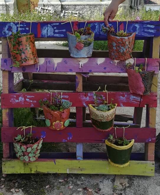 El trabajo ha consistido en pintar unos pallets que había junto al centro. Seguidamente, se han decorado macetas y se han plantado diversas flores, gracias a la colaboración las familias, según explica una de las responsables, Belén de Miguel. Se han puesto unas 35 macetas en esos pallets. Remarca que uno de los objetivos de este tipo de iniciativas es ir decorando y adecentando esta zona. La idea es seguir en esta línea.