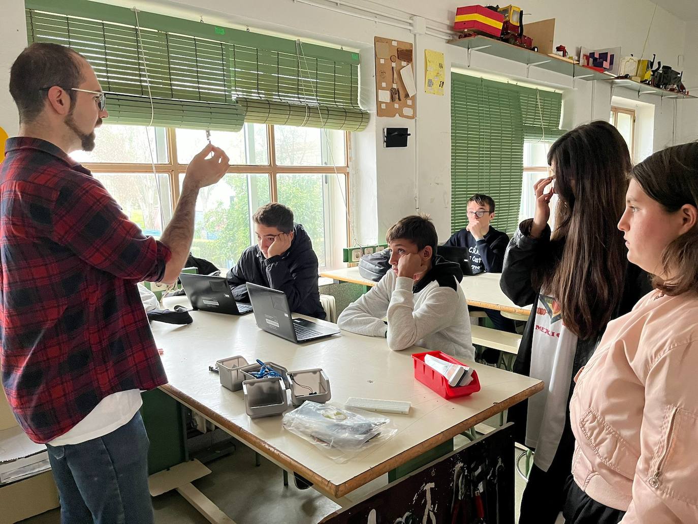En esta línea, estudiantes de FP del Turgalium están en continuo contacto con este responsable para llevar a cabo proyectos de emprendimiento, con el fin de mostrar a los jóvenes que cualquier persona puede tener una idea susceptible de convertirse en negocio. Asimismo, se están trabajando iniciativas relacionadas con robótica, electrónica y diseño de impresión 3D, con el apoyo de la profesora de tecnología, Mercedes Arroyo. Entre otros proyectos, se tiene diseñado un soporte para móvil. También se quiere hacer el riego automático del huerto, además del diseño de un videojuego con la placa microbit , entre otras propuestas.