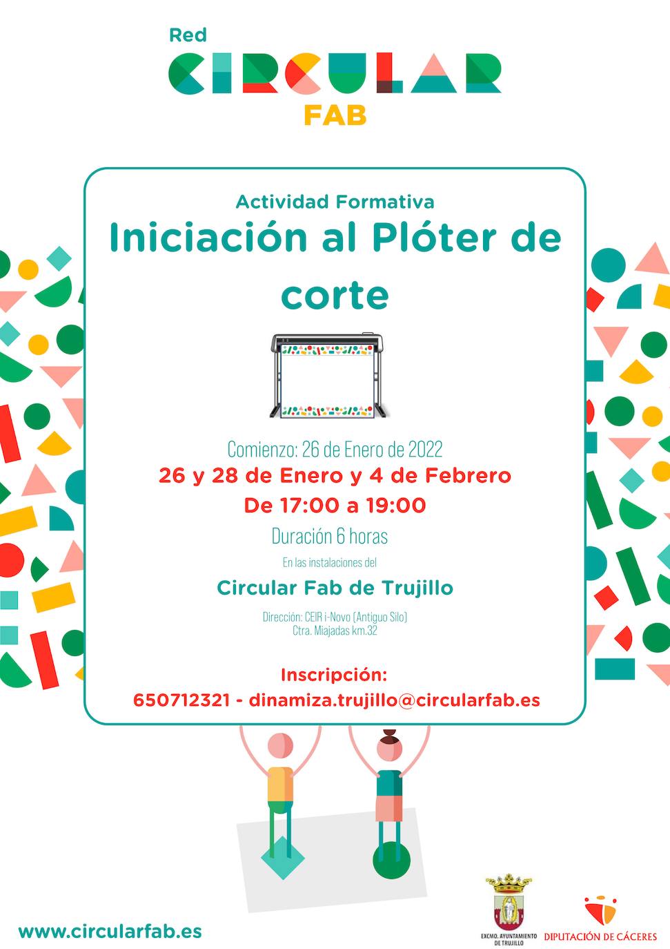 La primera acción formativa prevista es 'Iniciación al plóter de corte', que se impartirá los días 26 y 28 de enero, así como 4 de febrero, con una duración de 6 horas. Otro curso está basado en la iniciación al diseño vectorial, que comenzará el 9 de febrero. Tendrá una duración de 12 horas y se impartirá los miércoles y viernes, de cinco a siete de la tarde. El último cursos previsto ahora es 'iniciación a la impresión 3D', que está previsto para que comience el 25 de febrero. En este caso, se llevará a cabo los martes y jueves, también de cinco a siete de la tarde. Tendrá una duración de 20 horas. «Esta formación es gratuita y teniendo que realizar la inscripción en dinamiza.trujillo@circularfab.es o en el teléfono 650 71 23 21», según la organización.