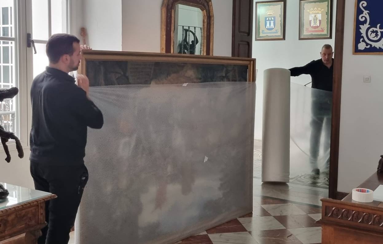Además de este gran cuadro, se han seleccionado otras cinco obras de arte sacro. El párroco trujillano Juan Carlos Milla recuerda que se llevaron en un principio cuatro obras para restaurar. Una vez hecho ese trabajo, se trajo una de ellas, que es 'El Cristo Amarrado a la Columna', para que participase en la procesión de Semana Santa. Después, se lo volvieron a llevar el 27 de abril ya de forma definitiva para participar en esta gran muestra.