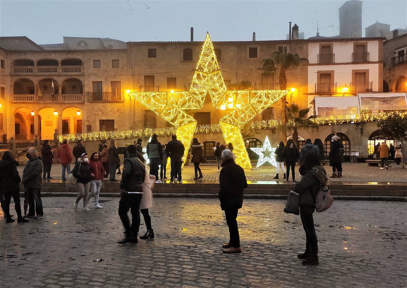 Las estrellas, una de ellas de gran tamaño, presiden estos días la plaza MayorLas bajas temperaturas no han sido impedimento para que la ciudad, una vez más, reciba a cientos de turistas durante estos días. Así se ha podido comprobar en la oficina de turismo, con una gran afluencia de personas pidiendo información. Asimismo, la ocupación de habitaciones en el sector turístico está casi al completo. «Estamos a un 97 por ciento de ocupación durante todo el puente de la Constitución», señalan fuentes municipales. Desde el sector de la hostelería, igualmente, corroboran esta situación.
