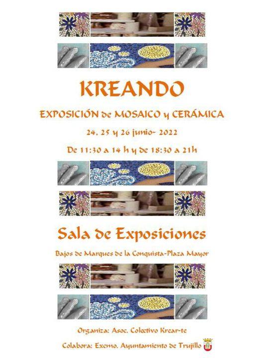 Colectivo Krearte ha vuelto a poner en marcha su tradicional muestra con la participación de su alumnado, grande y pequeño. De este modo, este viernes, ... a la una de la tarde, tendrá lugar la inauguración de la exposición de trabajos de mosaico y cerámica llamada 'Kreando'. Esas obras se podrán ver en los bajos del Palacio de la Conquista, hasta el domingo, en horario de 11.30 horas a dos de la tarde y de 18.30 horas a nueve de la noche. La inauguración será este viernes, a la una de la tarde.