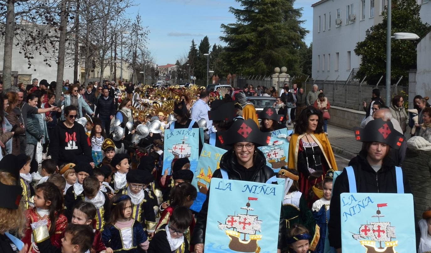 Los colegios, durante este Carnaval, tuvieron que adaptar sus desfiles de disfraces ante el mal tiempo. Las Américas lo celebró este viernes, por la avenida Reina María Cristina. En esta ocasión, los menores, junto a sus docentes, se disfrazaron bajo la temática de Los descubridores y pueblos precolombinos.