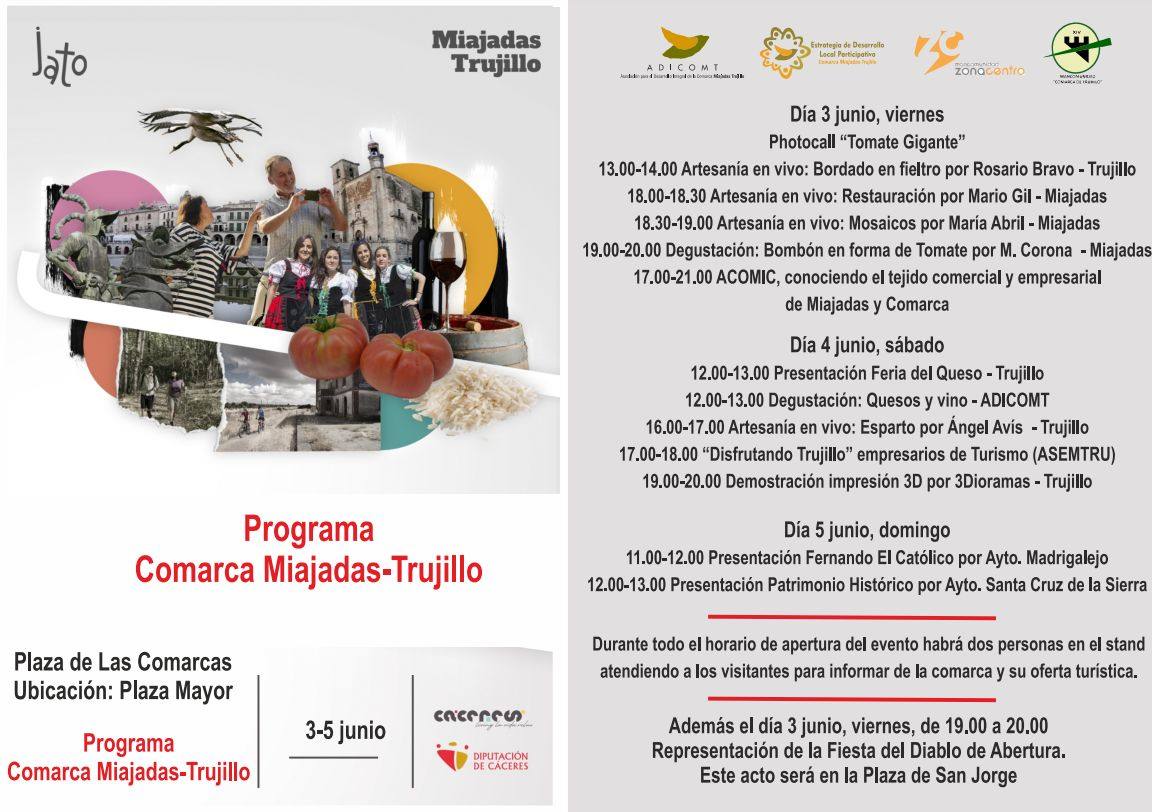 Como no podía ser de otra forma, En Jato también estará la zona trujillana, con una programación diseñada por Adicomt, que tiene un stand, con el apoyo de las mancomunidades Comarca de Trujillo y Zona Centro. De este modo, se expondrá el trabajo de artesanos, además de haber iniciativas empresariales, así como algunas citas culturales, turísticas y gastronómicas.