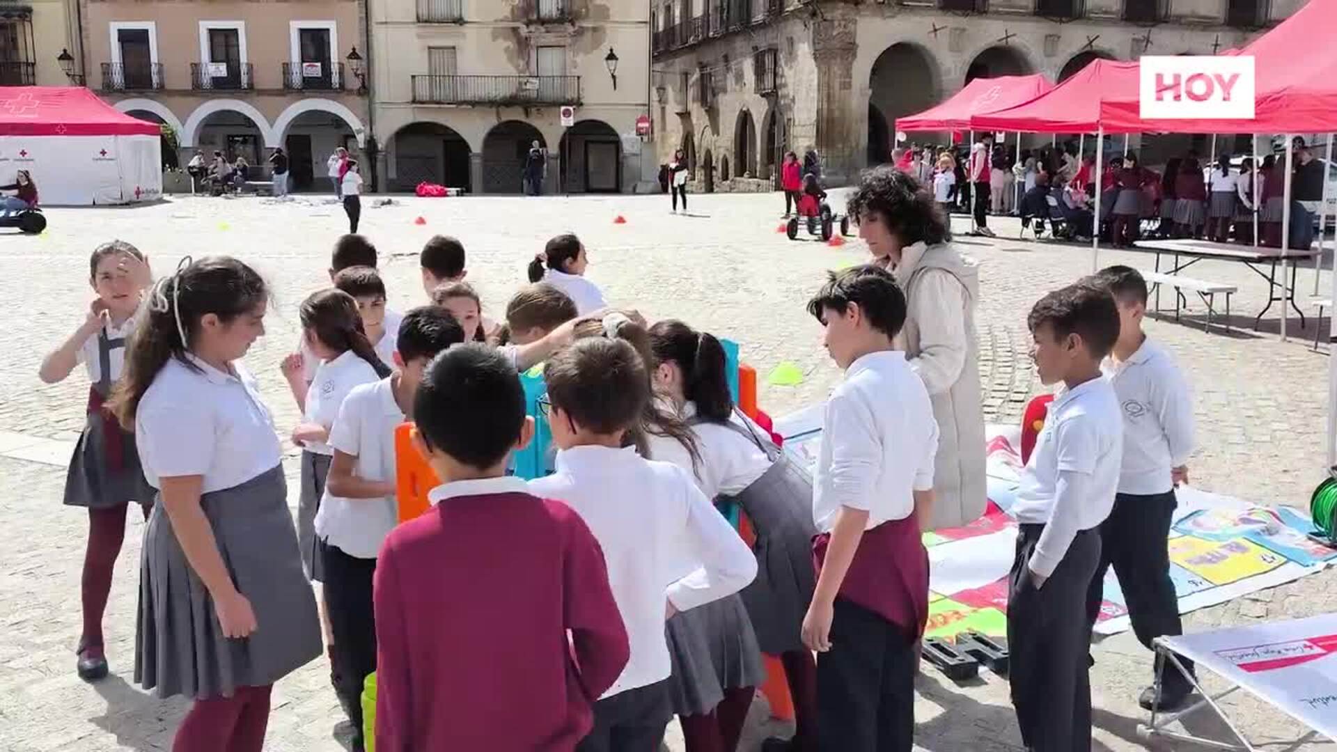 Cruz Roja abrió ayer sus puertas a centros educativos, así como al resto de la ciudadanía. Lo hizo en plena plaza Mayor trujillana, mostrando recursos de diferentes áreas.