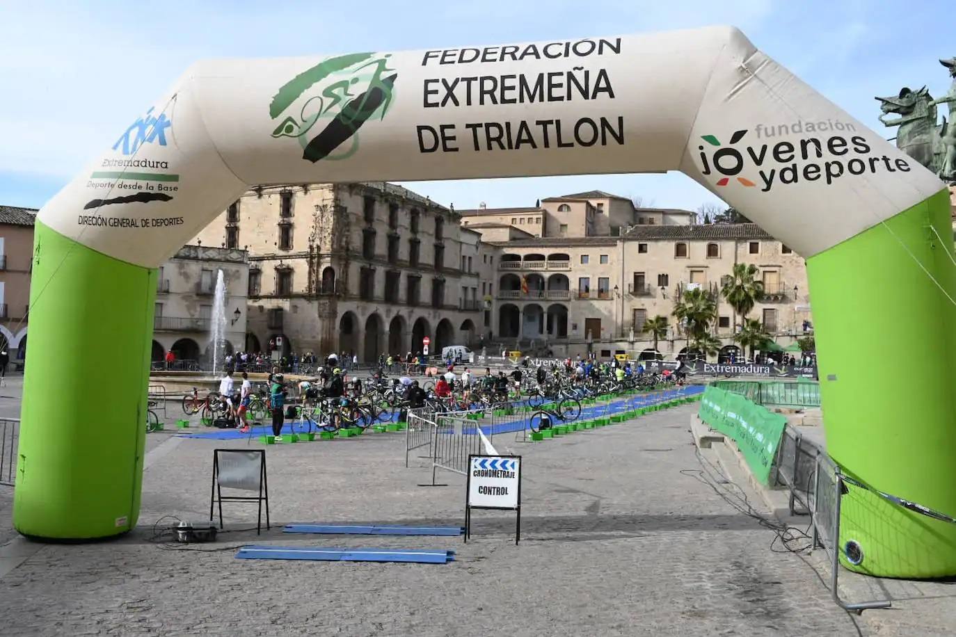 La actividad deportiva continúa hoy en la ciudad trujillana, con la IV edición del Duatlón Ciudad de Trujillo. De este modo, la plaza Mayor se convertirá en el centro neurálgico de esta prueba. La salida del alrededor de 150 participantes tendrá lugar a las 11.00 horas. A partir de ese momento, los corredores deberán dar cuatro vueltas a pie en un circuito urbano, hacer 20 kilómetros en bicicleta y volver a dar dos vueltas a pie ese circuito urbano, para llegar a meta, situada en la plaza Mayor, así como la salida.