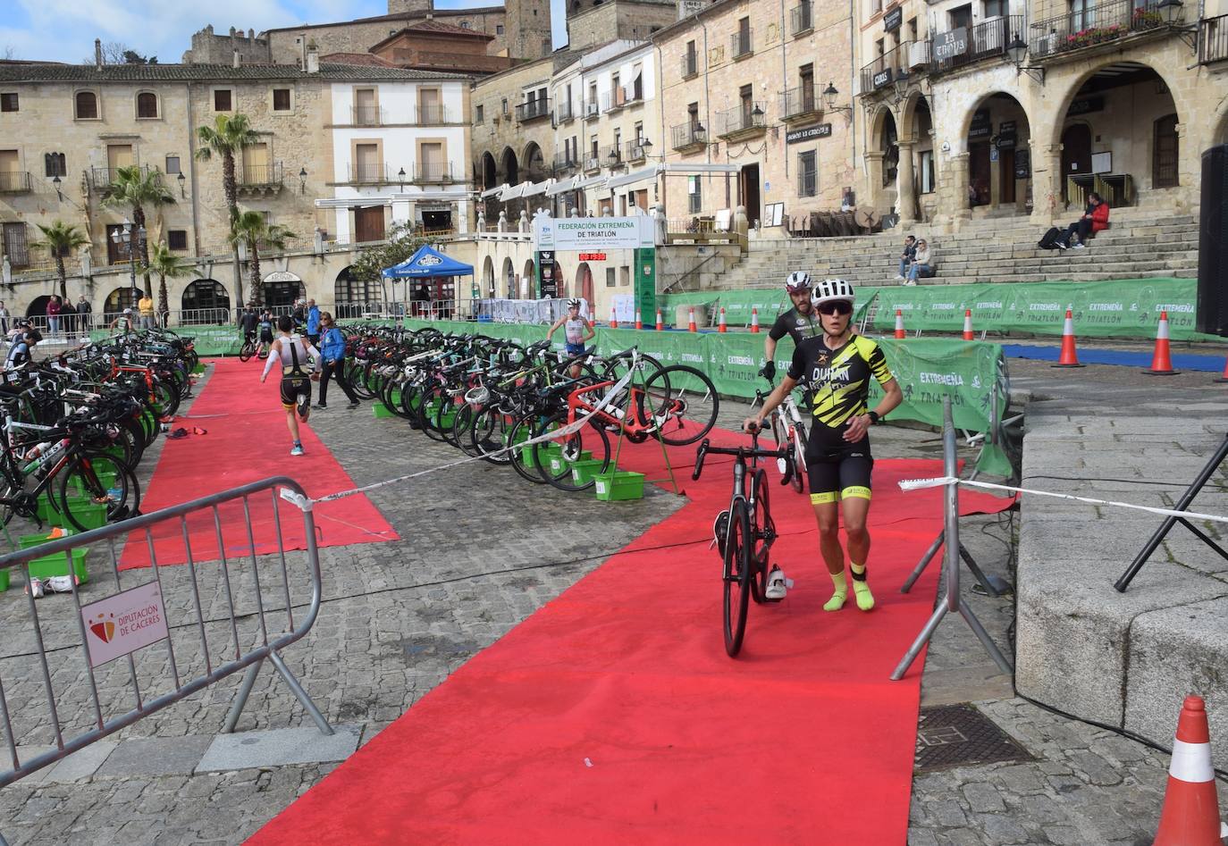 El frío estuvo presente en la prueba. No obstante, los corredores pudieron esquivar la lluvia, que era uno de los miedos de los responsables. Así se desarrolló ayer el IV Duatlón Ciudad de Trujillo, convertido en Campeonato de Extremadura para las diferentes categorías. Organizado por la Federación Extremeña de Triatlón, con el apoyo del Ayuntamiento, hubo 162 participantes, entre masculinos y femeninos. Los ganadores fueron Adrián Álvaro y Cristina Durán. En la categoría de paratriatleta, el primero en llegar a meta fue Toni Franco.