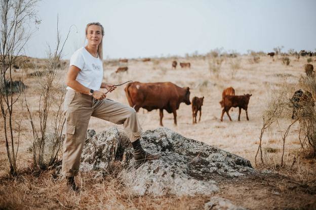 A partir de ahí, surgió la posibilidad de continuar los pasos de su padre, un referente para ella. «Era una aventura porque vengo de otro mundo». Sin embargo, reconoce que le daba más miedo poder adaptarse a Trujillo, tras vivir muchos años en grandes ciudades, que quedarse al frente de la explotación familiar. Por ello, en 2020, justo antes de comenzar la pandemia, decidió tomarse un año de transición. Recuerda que a la ganadería regenerativa llegó a través de su hermano Maxi, la otra mitad en este proyecto.