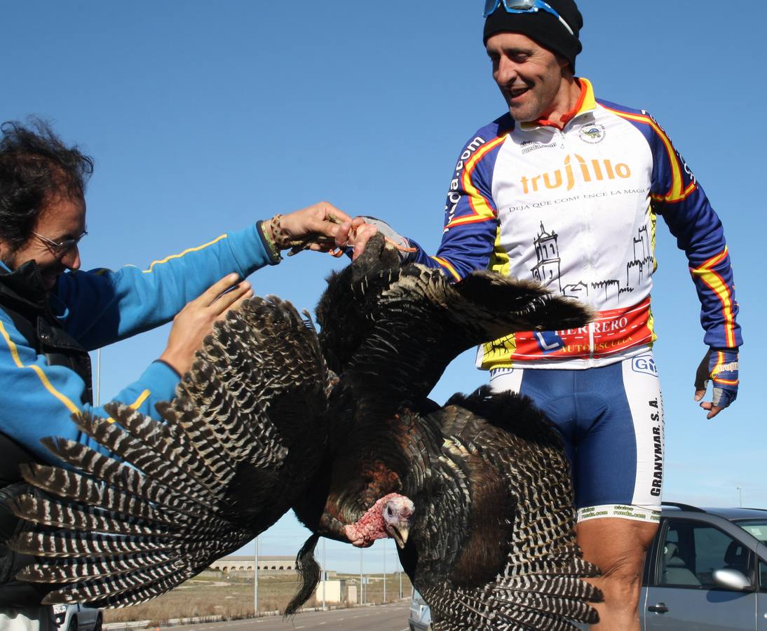 Un deseo para muchas familias es contar en la cenas o comidas navideñas con un pavo, eso si, ya cocinado. Los ciclistas trujillanos también esperan tener ese mismo trofeo. La gran diferencia es que el animal estará vivo. Ese será el premio que se entregará en la carrera ciclista que se llevará en Trujillo el 20 de diciembre, organizada por la Asociación Deportiva Ciclista Francisco Pizarro. Uno de los coordinadores, Miguel Pino, recuerda que tomaron nota de localidades fuera de la comunidad autónoma y ya es la VI edición que lo celebran de esta forma. En esta ocasión, se darán un ejemplar a cada campeón de seis categorías.