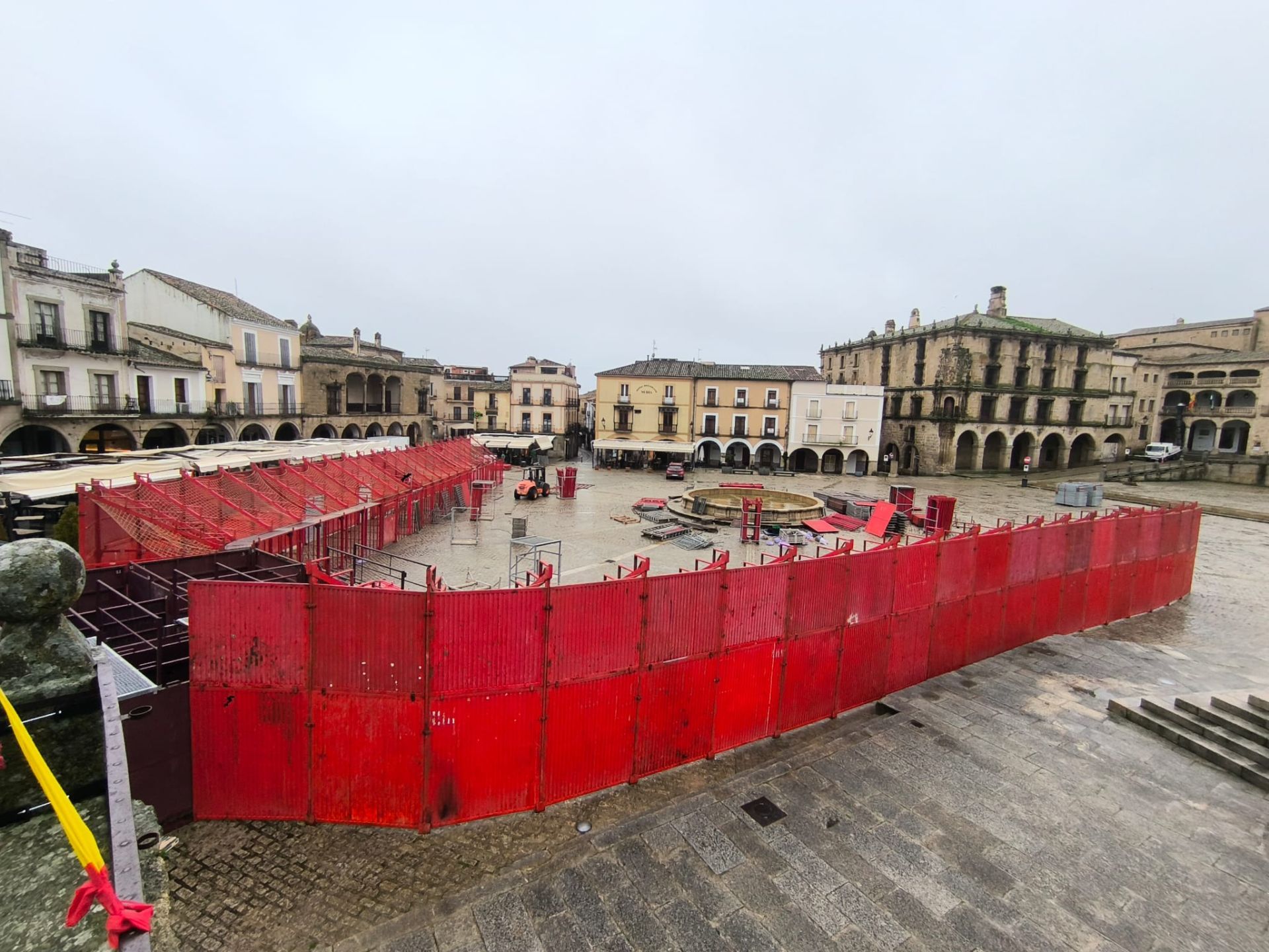 Los trabajos continúan para la celebración de los festejos taurinos que se desarrollarán con motivo del Carnaval, del 13 al 15 de febrero. Prueba de ellos es el montaje de la plaza portáti, en la plaza Mayor, que poco a poco avanza, a pesar de la lluvia. Esas labores de montaje se iniciaron este fin de semana.