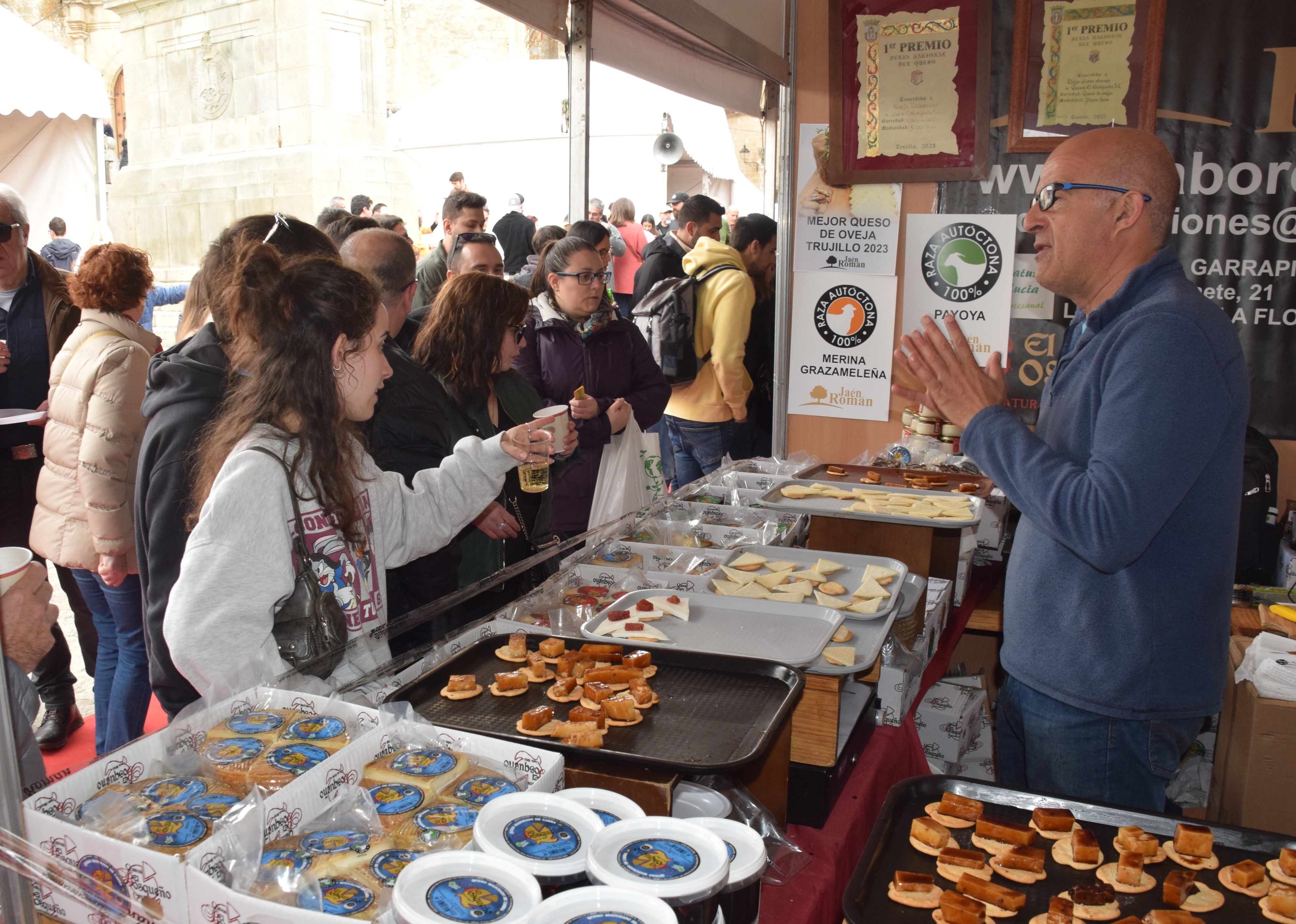 Uno de los atractivos de la Feria de Trujillo es que concede la oportunidad de sumergirse en sabores y aromas de Galicia y, a unos metros, deleitarse con quesos de Castilla y León o de Asturias. Sin salir de la plaza Mayor, puede encontrarse, casi por casualidad, con productos de distintos puntos de la región extremeña y, sin descanso, degustar sabores de Cádiz, de Huesca, de Ciudad Real y Guipúzcoa, entre otros muchos lugares.
