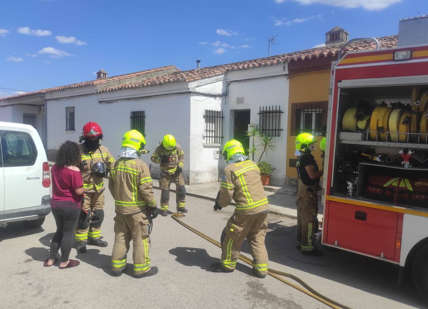 A través del 112, se dio el aviso de este suceso, que ocurrió minutos antes de las 15.30 horas. El jefe de Guardia de los bomberos, Juan Pastor, explica que recibieron la incidencia de una vivienda ardiendo. El fuego estaba localizado en la cocina, «lo que parecía que estaba empezando a desarrollarse intensamente». Desde Cáceres, se desplazaron tres dotaciones, con siete efectivos. Este responsable explica que, en conversaciones con los agentes locales, «que llegaron enseguida», se quedó toda la vivienda cerrada, lo que ha evitado que las llamas se propagasen, incluso a casas colindantes. Sostiene que los agentes también evacuaron a una vivienda anexa, ya que se estaba llenando también de humo.