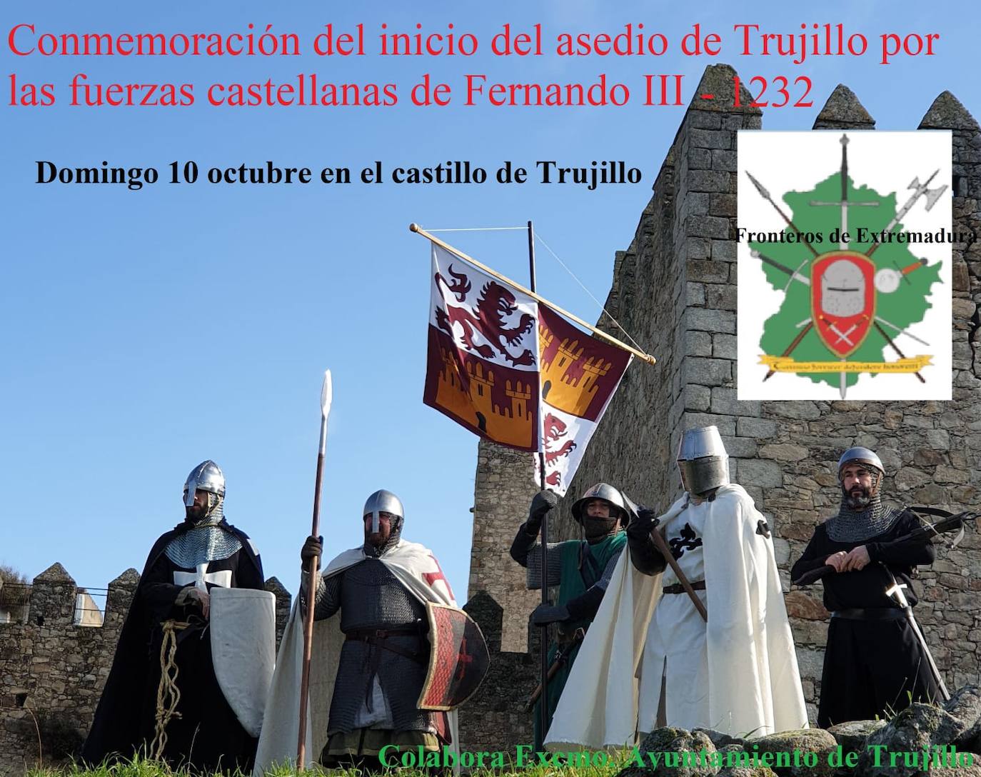El grupo 'Fronteros de Extremadura' continúa con sus propuestas para dar a conocer las artes marciales europeas durante el medievo, mediante exhibiciones y recreaciones. En ... esta ocasión, sus integrantes van a conmemorar el 10 de octubre el inicio del asedio de Trujillo por las fuerzas castellanas de Fernando III en 1232, según fuentes de la organización. Para ello, irán ataviados con las la indumentaria y armaduras propias de la época, así como las espadas. El lugar elegido será el patio de armas del castillo.