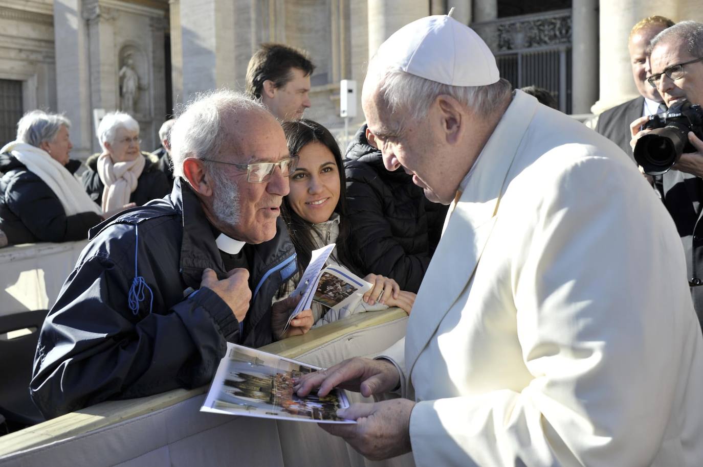 Uno de los promotores de este regalo ha sido Emilio Curiel, integrante de diversas asociaciones y muy ligado a la parroquia de Huertas de Ánimas. Recuerda que se creó una comisión con representantes de los colectivos para conmemorar en 2018 esas bodas oro. Con ese fin, asociaciones y vecinos pusieron dinero para sufragar los gastos. Una vez hecho todos los pagos, sobró más de mil euros. Con ese dinero, esa comisión decidió hacerle un regalo sorpresa de un viaje especial a Roma, con la posibilidad de poder tener una audiencia con el papa Francisco. «Tiene un feeling especial con este Papa», detallan distintos feligreses. Lo que podía parecer una quimera, al final se hizo realidad.