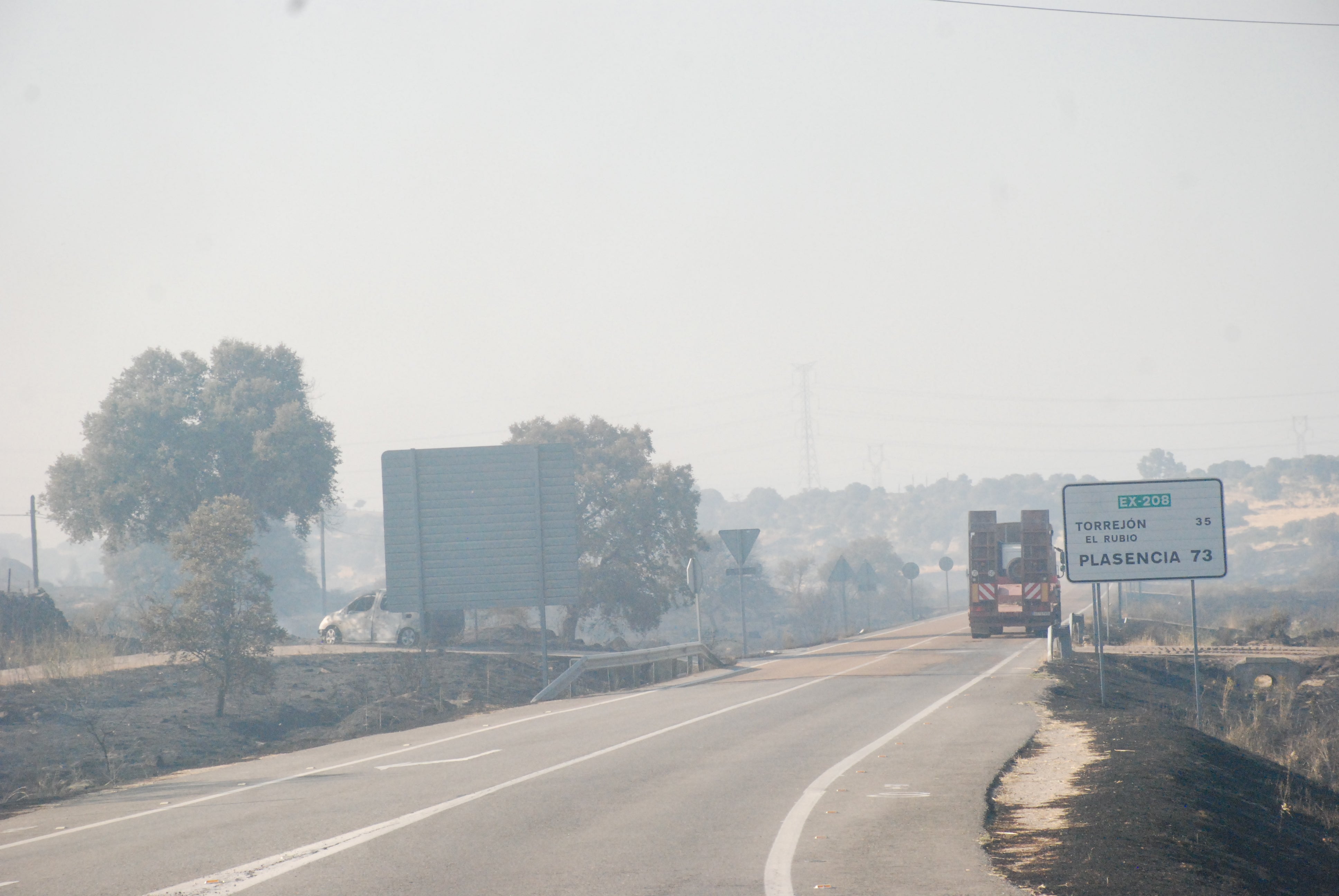 El incendio producido este miércoles en el término municipal de Trujillo mantuvo en vilo a muchos vecinos y vecinas. El humo y la cercanía de las llamas afectaron tanto a la carretera de Plasencia, como a la A-58 y a la autovía A5.