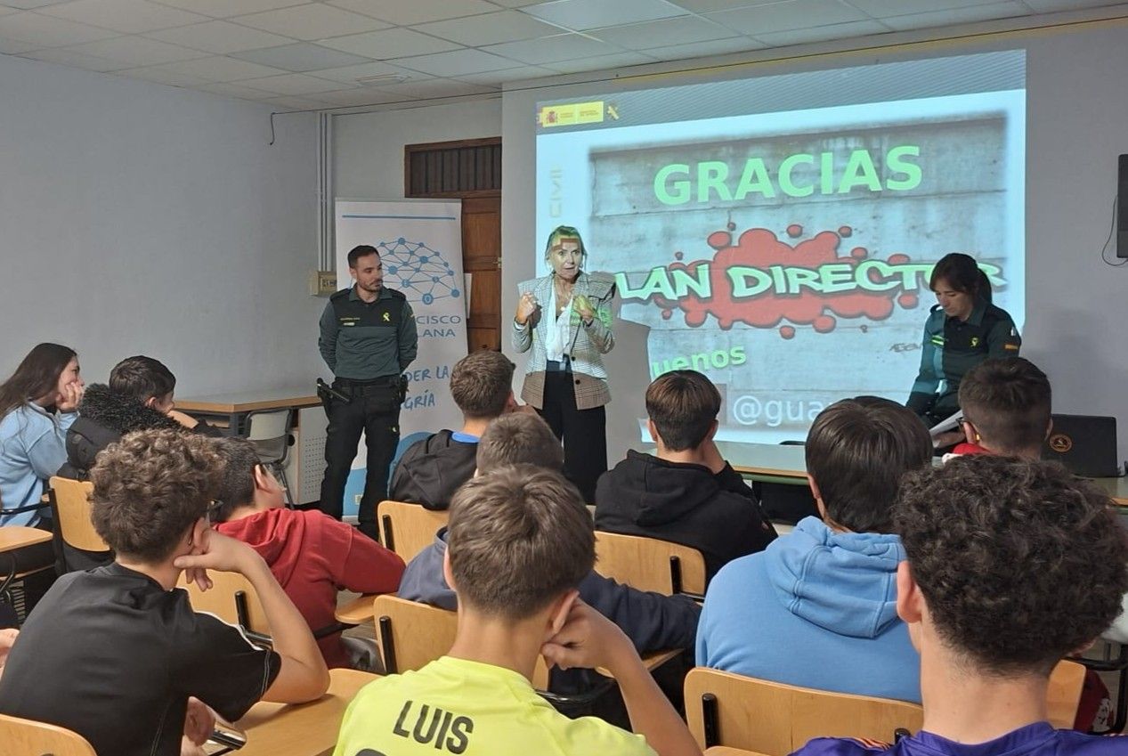 El instituto Francisco de Orellana ha acogido hace unos días el 'Plan Director para la convivencia y mejora de la seguridad en los centros educativos ... y su entorno'. Se trata de un programa impulsado por el Ministerio del Interior para prevenir problemas de convivencia. De este modo, a través de una charla, guardias civiles del cuartel de Trujillo se han convertido, durante un tiempo, en 'profesores' del alumnado. Eso si, han tocado temas muy distintos a los habituales en las clases.