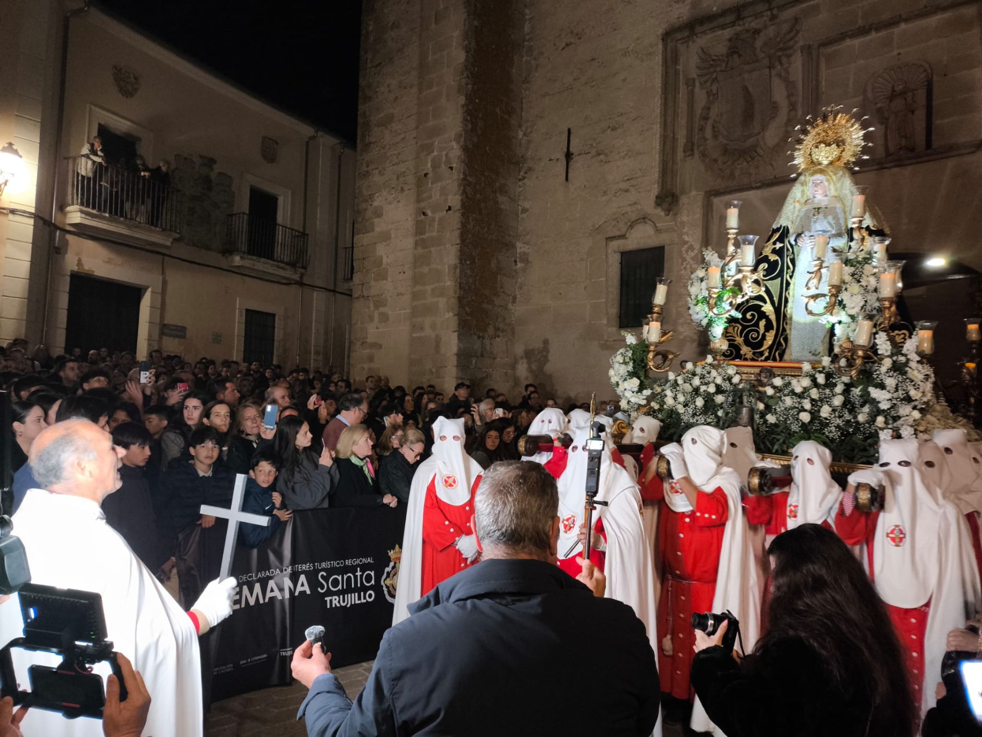 El Jueves Santo no fue necesario mirar al cielo y se pudo cumplir con la programación prevista sin temor a la lluvia. La primera procesión en celebrarse ayer fue la de Los Pasos. Pasadas las 21:00 horas, comenzaron a salir del templo de San Francisco las imágenes que conformaban este desfile procesional, ante la atenta mirada del numeroso público asistente. Se trataron de La Oración en el Huerto y María Magdalena, seguidas del Cristo Amarrado a la Columna, el Cristo Cautivo y la Virgen de la Soledad. Tras recorrer las calles principales de la ciudad, retornaron a San Francisco. Una de las notas musicales de la jornada la aportó la cantaora Tamara Alegre en diferentes puntos de esta procesión magna.