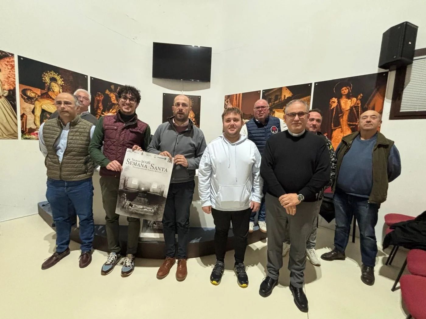 El presidente de la entidad, Manuel Quesada, recuerda que cuando Mateos expuso sus propuestas el año pasado, tuvieron problemas para decantarse entre dos opciones. Una de ellas fue el cartel de 2025 y decidieron que la otra fuese el de este año. El nuevo trabajo se ha hecho en dos formatos, para facilitar que puedan colocarse en los escaparates de los establecimientos comerciales. Asimismo, se ha incorporado un código QR que enlaza con la web de la entidad, donde habrá información de los distintos actos y procesiones.