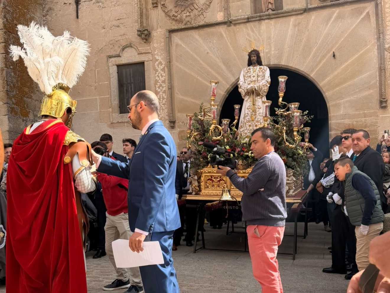 Se trata de una propuesta diferente que, poco a poco, va teniendo más aceptación. El Jueves Santo acogió la lectura de la sentencia a muerte ... de Jesús por parte del 'centurión' en el atrio de San Francisco, con la presencia del Cristo Cautivo. Antes, se leyó el pasaje del Evangelio que narra ese momento. Decenas de personas no se quisieron perder este acto, que se celebró por primera vez el año pasado. Antes, varios 'soldados romanos' descendieron del castillo a caballo para presenciar ese acto.