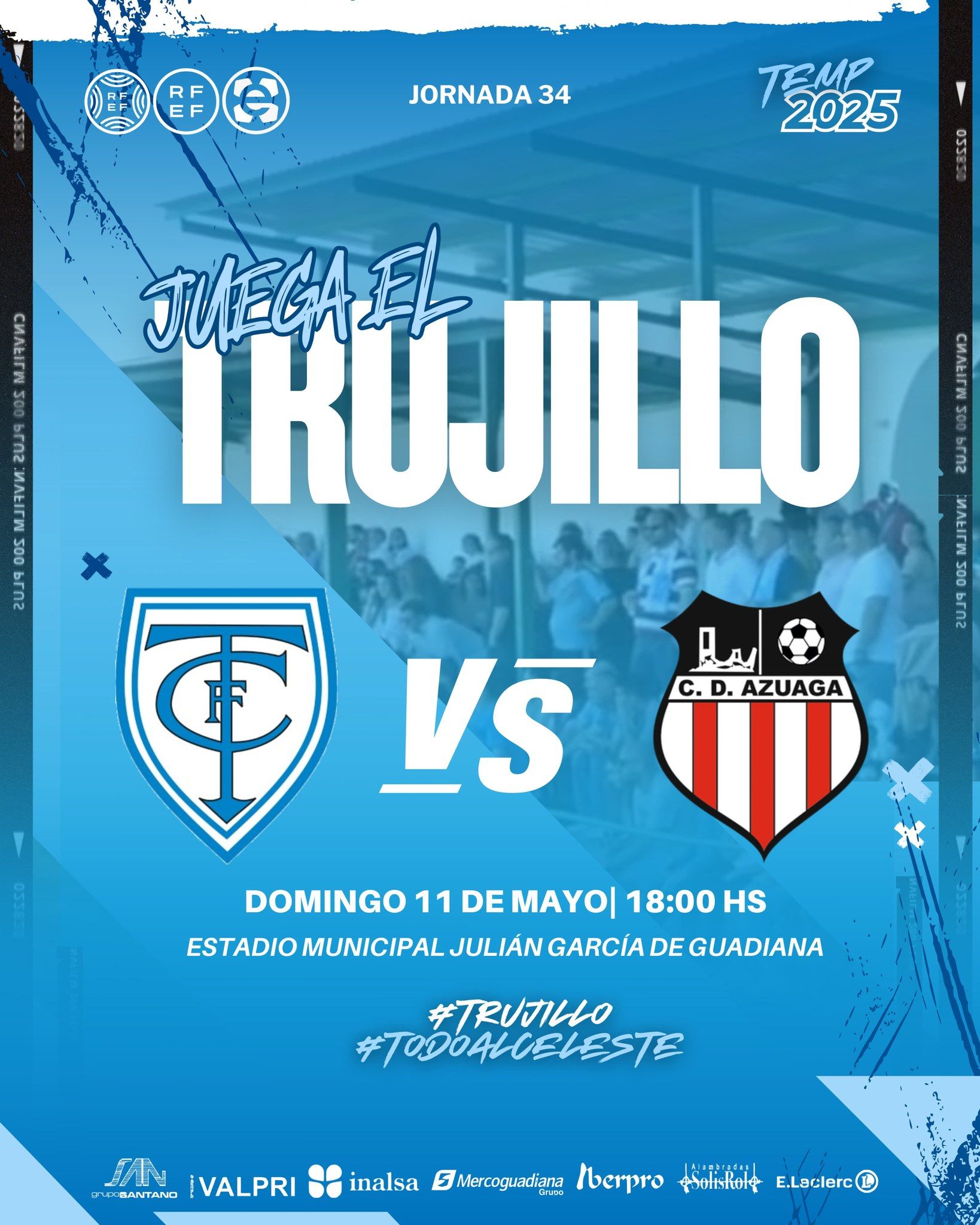 El C. F. Trujillo llega al final de la liga este fin de semana todavía con los deberes sin hacer. Se juega la permanencia en la Tercera División. Este último partido tendrá lugar el domingo a las 18:00 horas en el municipal Julián García de Guadiana. Será contra el segundo clasificado, el CD Azuaga, que tratará de conseguir la victoria para mantener ese puesto, con la mirada en los play-off de ascenso.