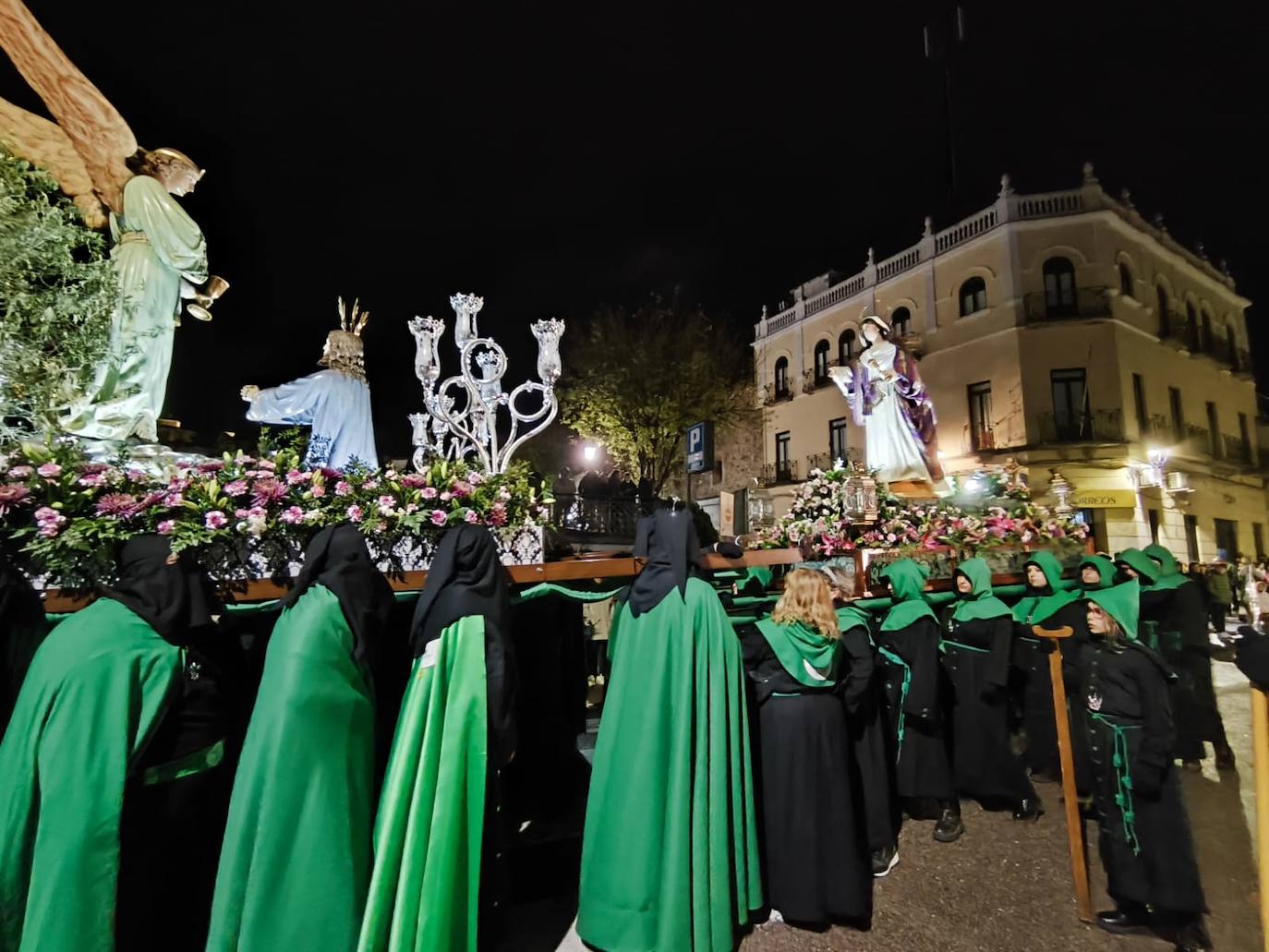 Desde la iglesia de la Merced, sobre las 21.20 horas, La Magdalena comenzó su participación en el desfile, avanzando por la calle Encarnación, junto con la banda de tambores de la cofradía del Santo Sepulcro.
