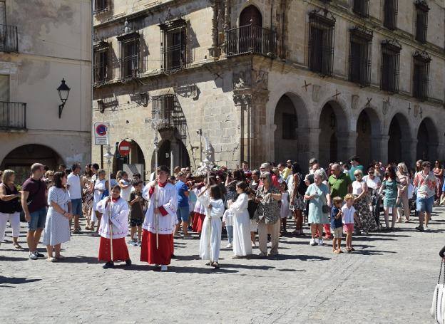 Este evento formará parte de una ajetreada agenda hoy, con motivo de estas fiestas patronales. Todo ello provocará que grupos de vecinos y familiares se echen a la calle para disfrutar de la jornada, tras las restricciones de años anteriores. No obstante, hay que recordar que los más pequeños, ya ayer, tuvieron la oportunidad de cantar ese himno Salve en la puerta de la iglesia de San Martín, tras la novena infantil. Antes de ello, se realizó la procesión por la plaza Mayor con una imagen de la Virgen cargada por pequeños devotos.