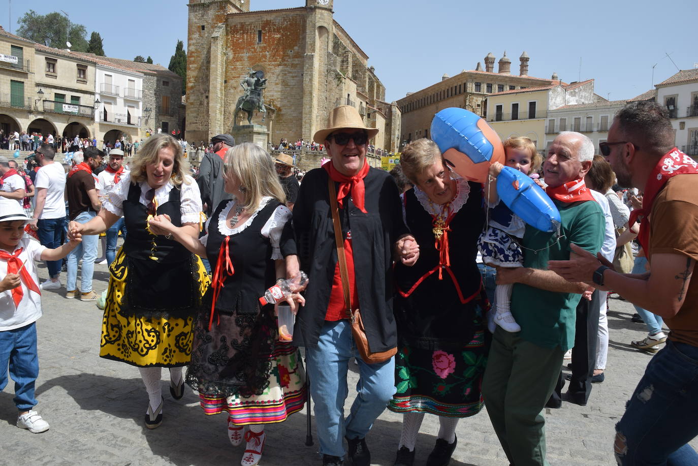 El intenso calor fue uno de los grandes protagonistas unido con el gran colorido que lució la plaza Mayor trujillana, con miles de personas. Se trató de la celebración de la fiesta del Chíviri, declarada de Interés Turístico Regional. Vecinos y visitantes disfrutaron de esta jornada festiva, con sus canciones tradicionales. No faltaron hombres y mujeres ataviadas con el traje tradicional.