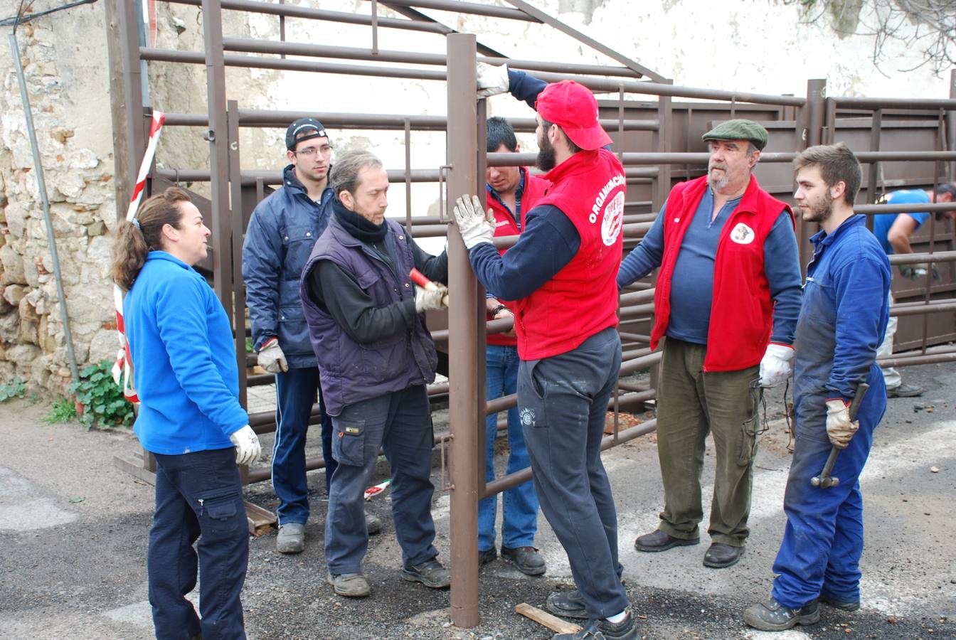 Además de terminar esos corrales, los voluntarios situaron ayer los cierres de calles en cada uno de los cruces del recorrido. A partir del lunes, se dedicarán a ajustar estas estructuras, para que no haya sobresaltos de última hora. La intención es dejarlas fijas el 5 de febrero. Palacios detalla que se han aprovechado los huecos o agujeros que se hicieron el año pasado para poner ese nuevo vallado. En 2015, se utilizaron 'los hierros' de la comisión de fiestas de Huertas de Ánimas.