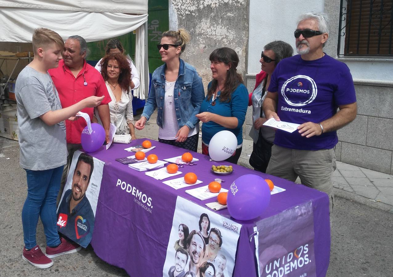 Representantes de Unidos-Podemos estuvieron en el mercadillo de los jueves en Trujillo haciendo campaña para las elecciones del 26 J. Para ello, repartieron folletos ... y ofrecieron información. Una de las responsables, Belén de Miguel, aseguró que hay que perder el miedo y votar a esta coalición porque ya hemos probado PSOE y PP y el país no puede ir peor. No tiene dudas de que Unidos, si podemos sacar una sonrisa a este país.