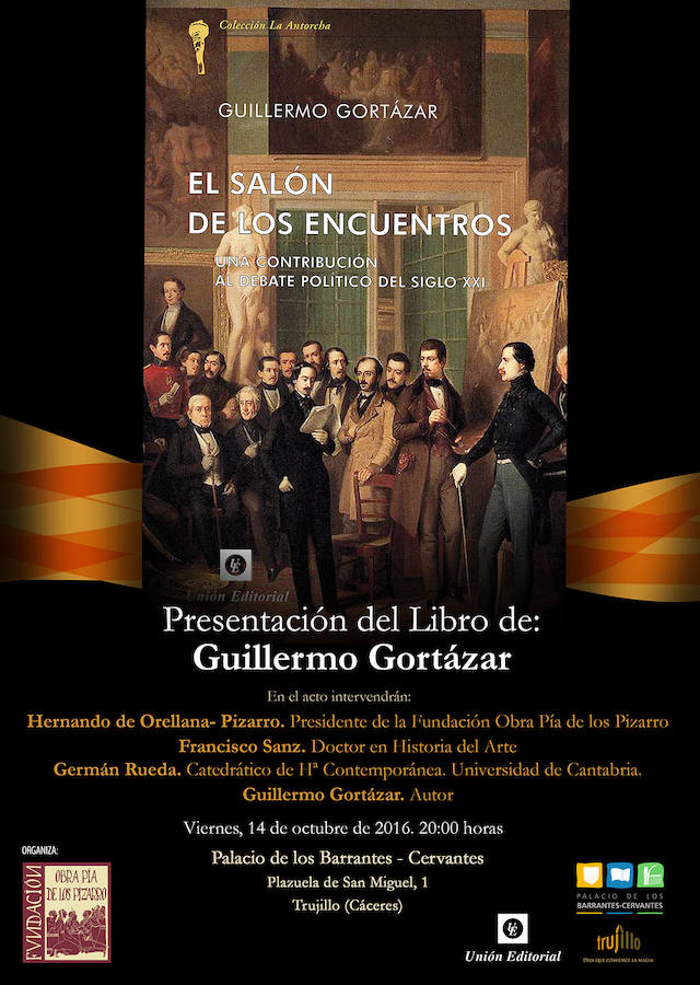 El historiador y abogado, Guillermo Gortázar, presentará hoy su último libro titulado El salón de los encuentros, una contribución al debate político del siglo XXI. ... Será en el palacio de los Barrantes Cervantes, a partir de las ocho de la tarde. Cuenta con la colaboración de la Fundación Obra Pía de los Pizarro.
