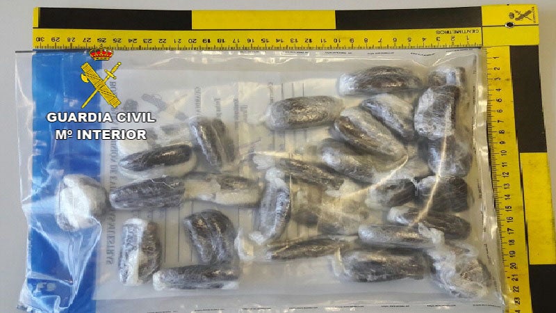 Finalmente, la Guardia Civil hico un registro minucioso del asiento que ocupada, encontrando entre el respaldo y la luna trasera del autobús, un envoltorio con 27 bellotas de hachís, con un peso de 426,73 gramos. Por este motivo, se procedió a su detención como supuesto autor de un delito contra la salud pública (tráfico de drogas), así como a la aprehensión de la droga localizada, siendo puesto a disposición del Juzgado de Instrucción de Guardia de Trujillo (Cáceres), añade fuentes de la propia Guardia Civil.