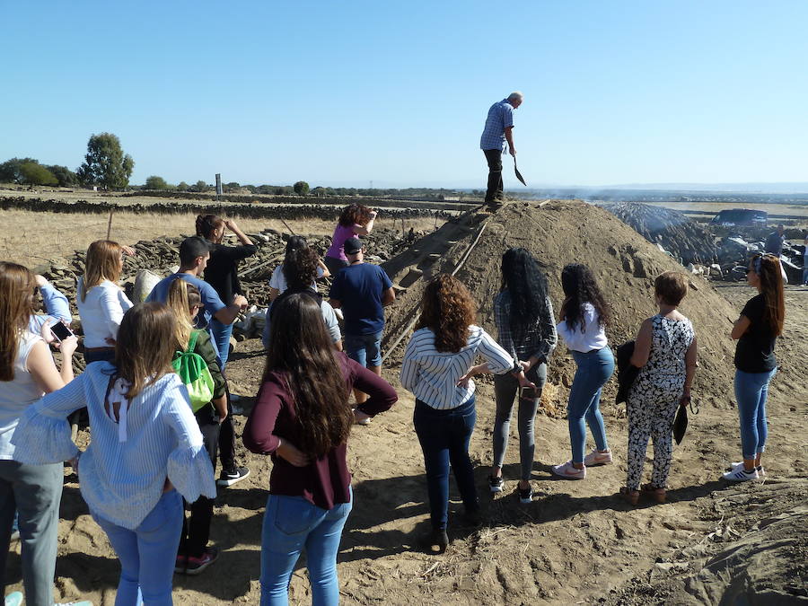 Redondo tomó la palabra en estas jornadas tras atender primero a su trabajo y preparar las carboneras para una visita que realizó el alumnado del ciclo formativo de Guía, Información y Asistencias Turísticas del IES Turgalium de Trujillo.