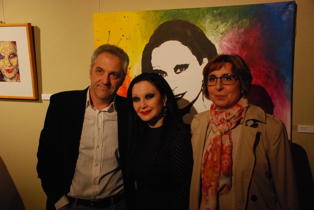 Durante el recorrido a la muestra no paró de saludar y de repartir besos. Los asistentes aprovecharon sus teléfonos móviles para poder fotografiarse con la protagonista de la exposición, siempre con una sonrisa en la cara. Grandes y mayores inmortalizaron el momento. Esta diva del pop también tuvo la oportunidad de hablar con algunos autores de la treintena de obras que forman parte la muestra dando su peculiar visión sobre la cantante.