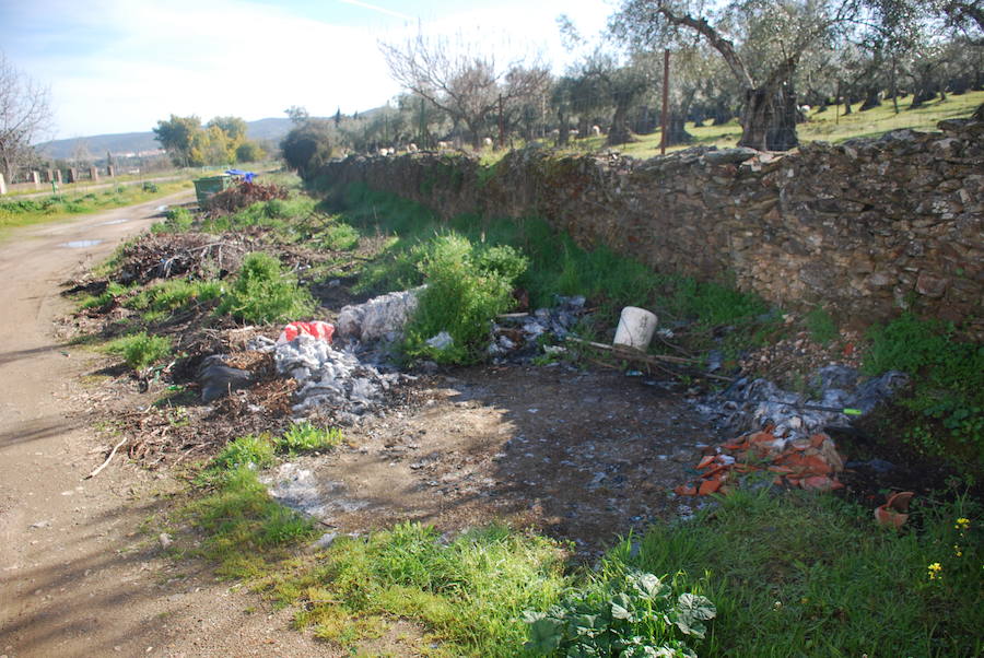 Según cuentan fuentes vecinales, esta situación no es nueva. Hace meses se lo comunicaron al Consistorio. Tras el paso del tiempo, no se ha puesto solución. Claudia Camacho es gerente de la Casa Rural El Recuerdo, ubicada en este núcleo de población. Explica que es habitual que vecinos dejen todo tipo de residuos alrededor de los contenedores, como restos de poda y escombros, además de plásticos y vidrio. Hay algunos, incluso, que dejan muebles, colchones y televisores. Prueba de ello es que, minutos después de estar la cámara de HOY en el lugar, un vecino tiró un sofá. «Algunas de esas acciones suelen ocurrir después del fin de semana», apunta la empresaria.