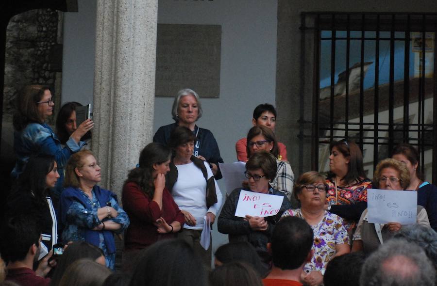 La sentencia en el caso de 'La Manada' ha despertado la indignación de una gran parte de los españoles. Los cinco miembros de 'La Manada' ... han sido condenados a nueve años de prisión por un delito continuado de abusos sexuales, pero no por violación. Esa indignación también se puso de manifiesto ayer en Trujillo. Decenas de personas, mujeres y hombres, se reunieron junto al palacio de Justicia, en la plaza Mayor, para protestar por esa polémica resolución judicial. La convocatoria, promovida por mujeres integrantes de diversos movimientos sociales, se difundió por las redes sociales. Durante esa concentración, algunas asistentes leyeron un manifiesto para mostrar, una vez más, el rechazo a esa sentencia: