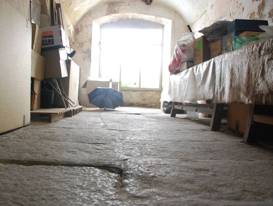 Justo al lado de esa inscripción estaba esa sinagoga, ahora reconvertida en tienda. Su responsable, Maribel Calleja, cuenta que, por esa puerta, se accedía a la escuela y, seguidamente, a las naves de oración, cuyo suelo sigue intacto. Señala que los expertos consideran que, en este lugar sagrado, había un altillo para las mujeres. Ahora está apareciendo una posible puerta por donde accedían solo las fieles femeninas. También recuerda que la calle Tiendas se abrió 50 años antes de que fueran expulsados los judíos.
