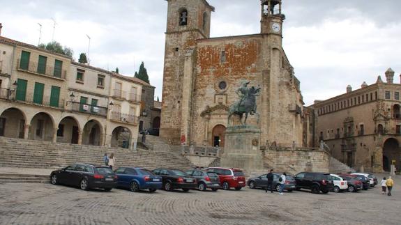 «Hemos podido traer el coche. Se puede aparcar». Ese fue el comentario de unos turistas hace unos días, a media mañana, al entrar andando ... en la histórica plaza Mayor de Trujillo y ver su perímetro lleno de vehículos. Es una imagen habitual de lunes a viernes, a pesar de que hay señales que lo prohiben. Se trata de una vieja polémica que perdura a lo largo de los años, al igual que la regulación del tráfico en la parte antigua. Aunque ha habido intentos por parte de los gobernantes locales de poner soluciones, el debate sigue abierto.