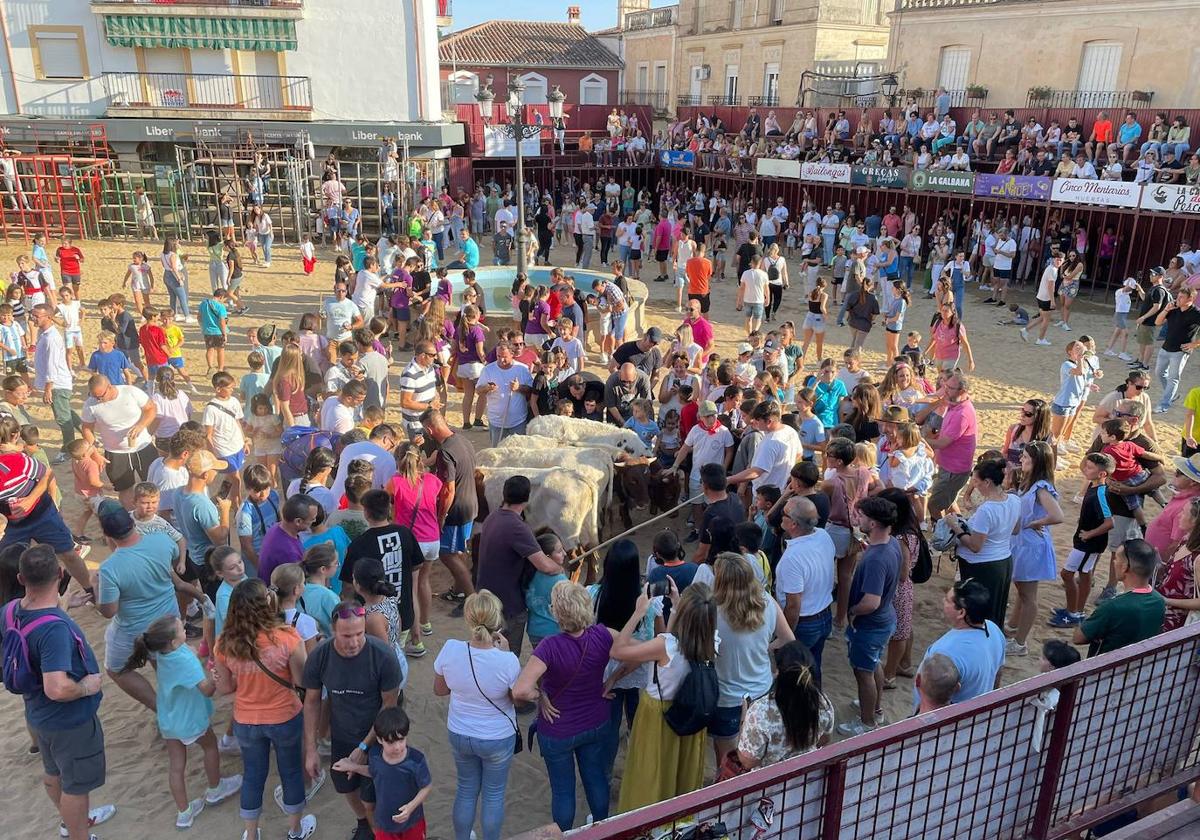 Decenas de menores disfrutaron ayer por la tarde de una de las novedades de las fiestas patronales de Huertas de Ánimas. Se trató de un encierro con mansos para el público infantil. Como manda la tradición, estos animales iniciaron el recorrido habitual para terminar en la plaza de toros, rodeados de números niños y niñas, acompañados por sus mayores. En la jornada de ayer, además, hubo chocolatada y la degustación de carne de ternera, elaborada por diferentes vecinos.