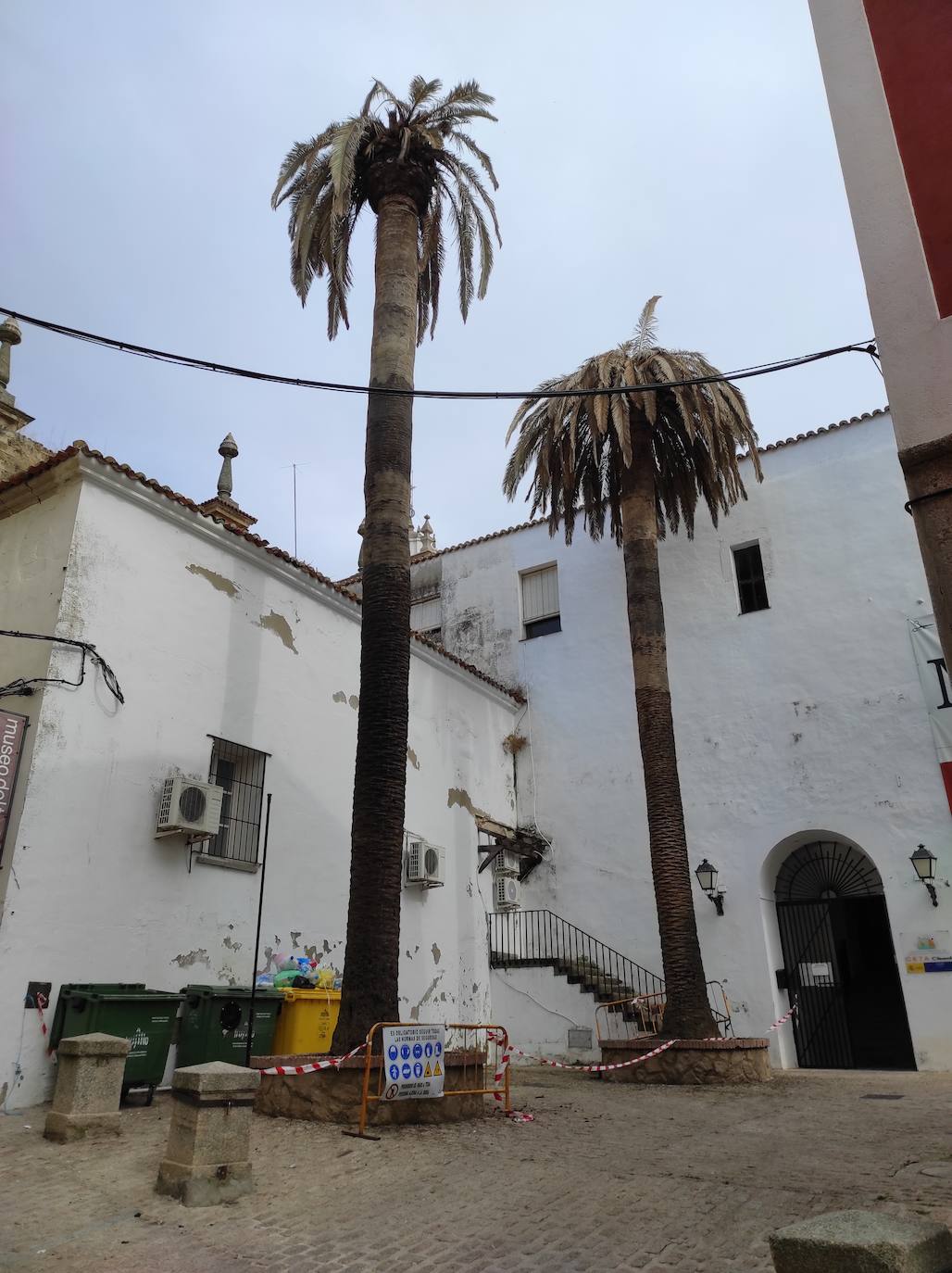 La primera se tuvo que cortar este verano. Estaba situada en la comunidad de vecinos de la calle Sola. En las últimas semanas, se han talado otras dos, una en el paseo Ruiz de Mendoza y la otra en el parque Hernán Cortés. En estos lugares hay más palmeras de este tipo y algunas de ellas forman parte de la imagen característica de estos espacios. Las siguientes en desaparecer serán los ejemplares de gran altura que están junto al conventual de San Francisco. Teniendo en cuenta su envergadura, pueden tener más de 150 años, según señalan algunos expertos. «Están secas», sostienen.